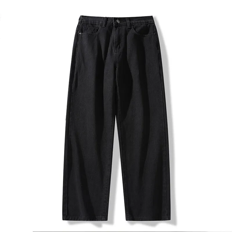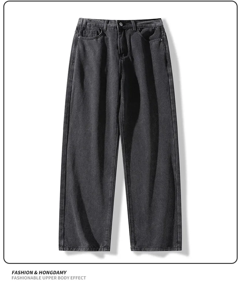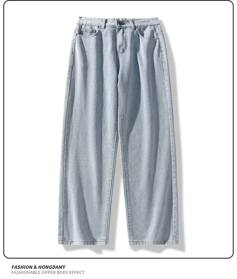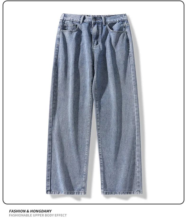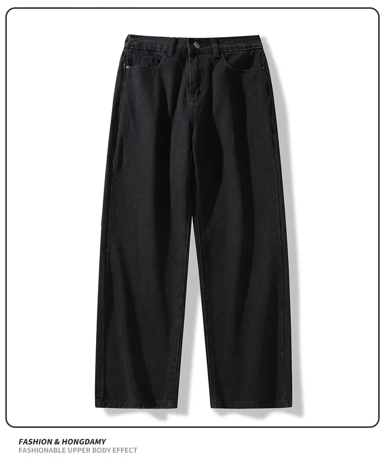 2025 New Men’s Korean Long Jeans Classic Man Straight Denim Wide-leg Pants Solid Color Casual Trousers