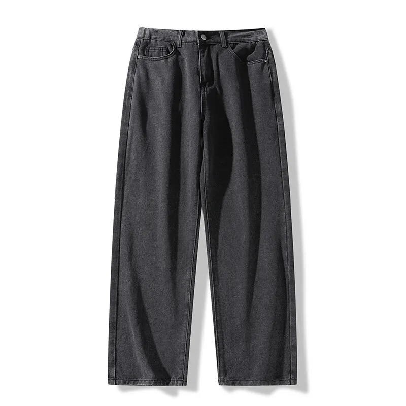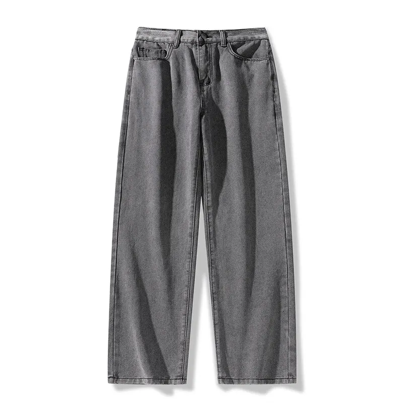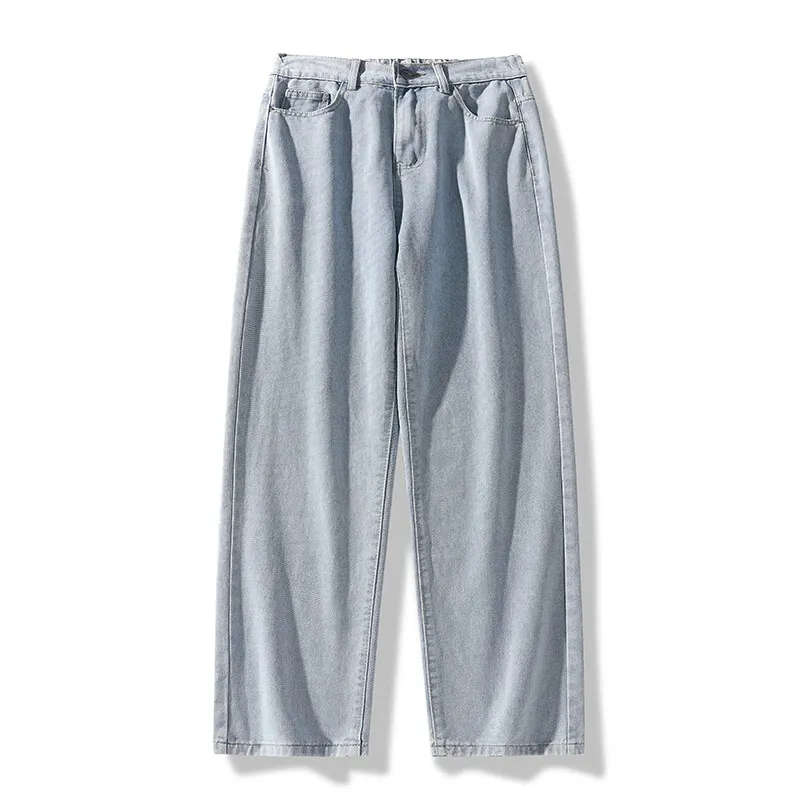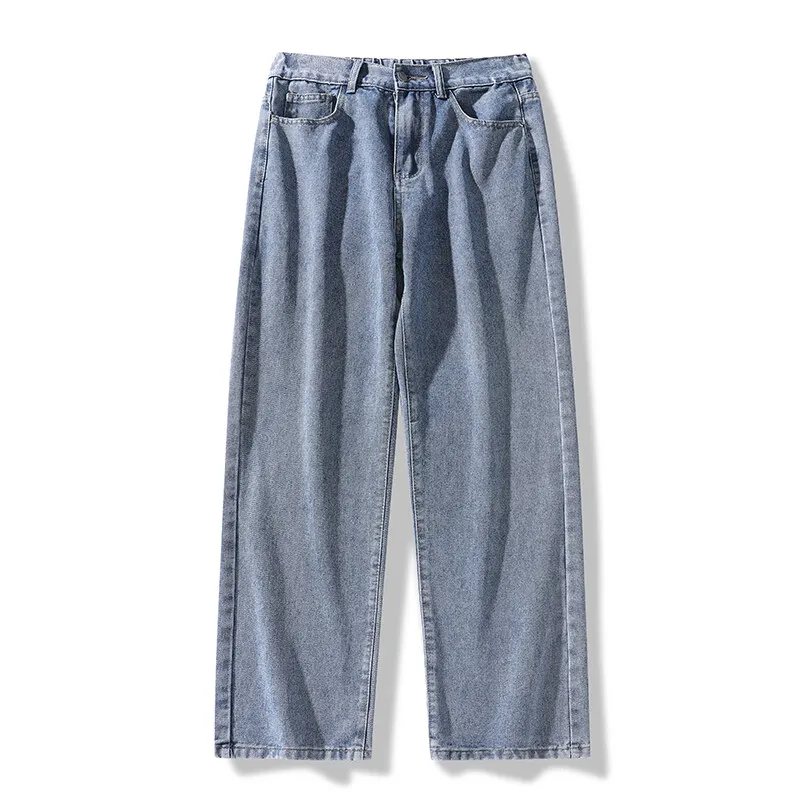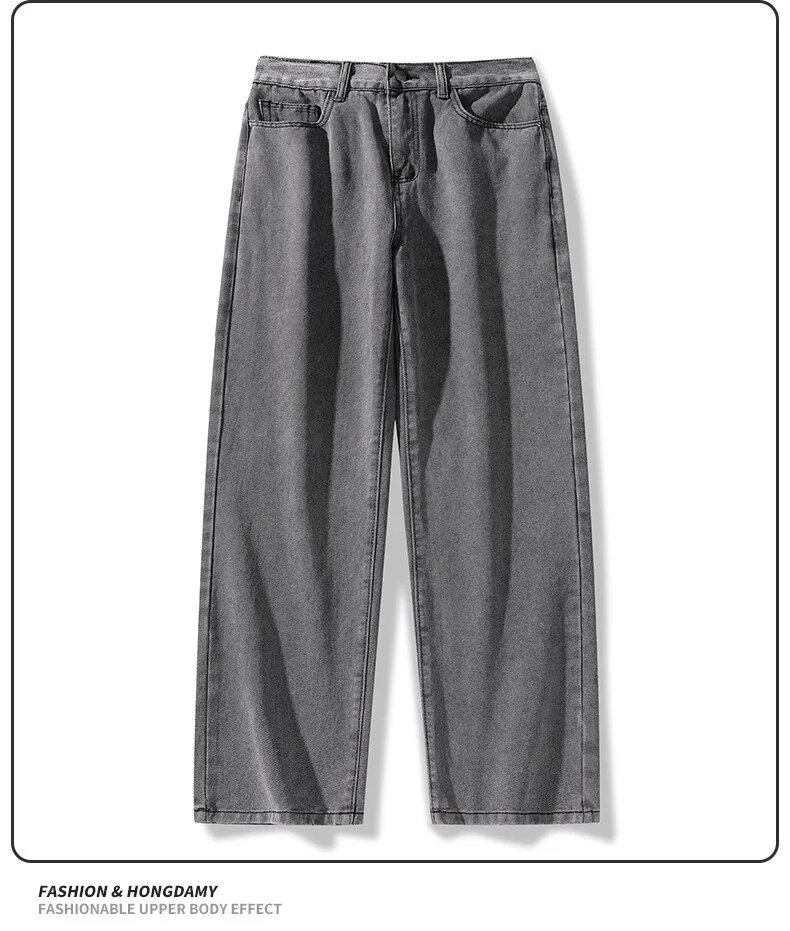 2025 New Men’s Korean Long Jeans Classic Man Straight Denim Wide-leg Pants Solid Color Casual Trousers