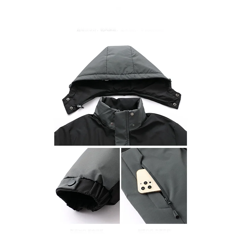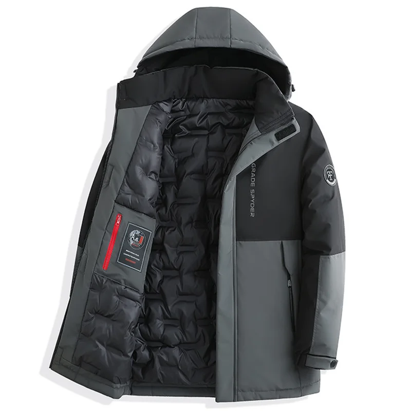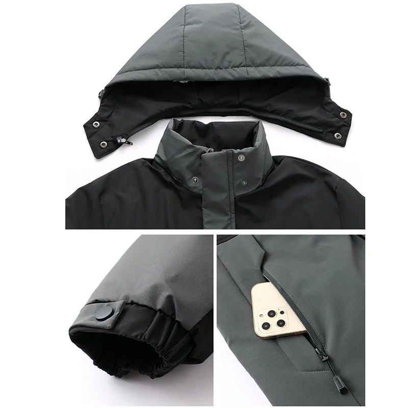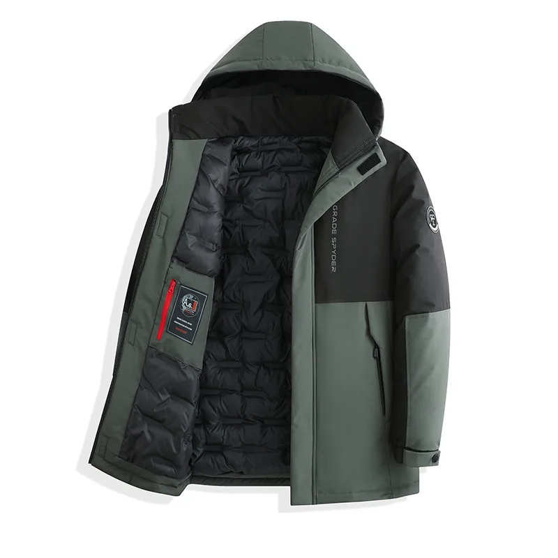 whether full opening: Yes High-concerned chemical: None Craft of Weaving: Tatting Applicable Season: Autumn And Winter Applicable Scene: CASUAL Place Of Origin: China (mainland) Decoration: Spliced Lining Material: POLYESTER Pattern Type: Patchwork Weight: 1.1kg Sleeve Style: regular Fabric Type: POLYESTER Closure Type: Zipper Type: regular Detachable Part: Hat Detachable Hooded: Yes Thickness: Thick Filling: COTTON Collar: Hooded Style: Casual Clothing Length: long(26+inch) Material: POLYESTER Brand Name: NoEnName_Null Origin: Mainland China CN: Jiangsu Gender: Men