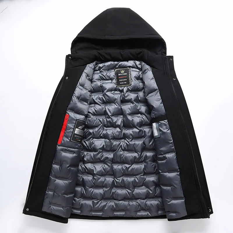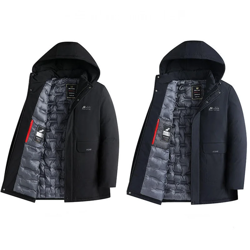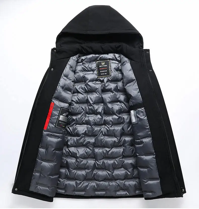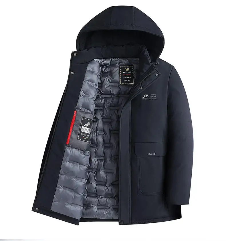 whether full opening: Yes High-concerned chemical: None Craft of Weaving: Tatting Applicable Season: Autumn And Winter Applicable Scene: CASUAL Place Of Origin: China (mainland) Decoration: Zippers,Spliced Lining Material: POLYESTER Pattern Type: Solid Weight: 1.2kg Sleeve Style: regular Fabric Type: POLYESTER Closure Type: Zipper Type: regular Detachable Part: Hat Detachable Hooded: Yes Thickness: Thick Filling: COTTON Collar: Hooded Style: Casual Clothing Length: long(26+inch) Material: POLYESTER Brand Name: NoEnName_Null Origin: Mainland China CN: Jiangsu Gender: Men